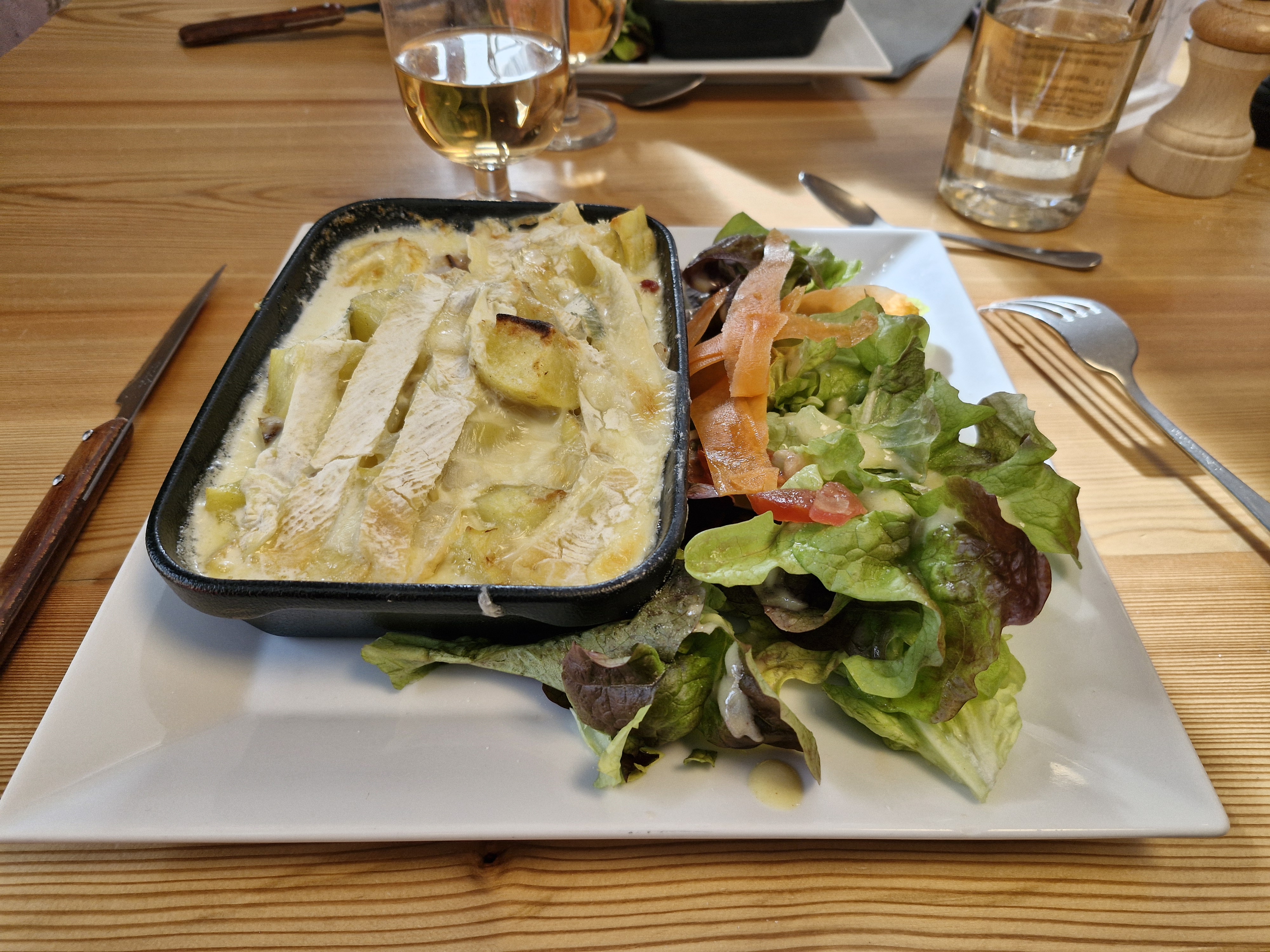 On est allé à midi pour déjeuner. Zéro option végétarienne à part la salade au chèvre où on a enlevé la charcuterie habituelle. Heureusement les toasts au chèvre viennent chauds car être obligé à manger une salade froide quand il fait -10 degrés dehors c'est quand même pas top. Un pays si riche en fromage, et les restaurants ne sont en mesure de faire des plats où l'on n'ajoute pas du lard ou du poulet. C'est dommage...