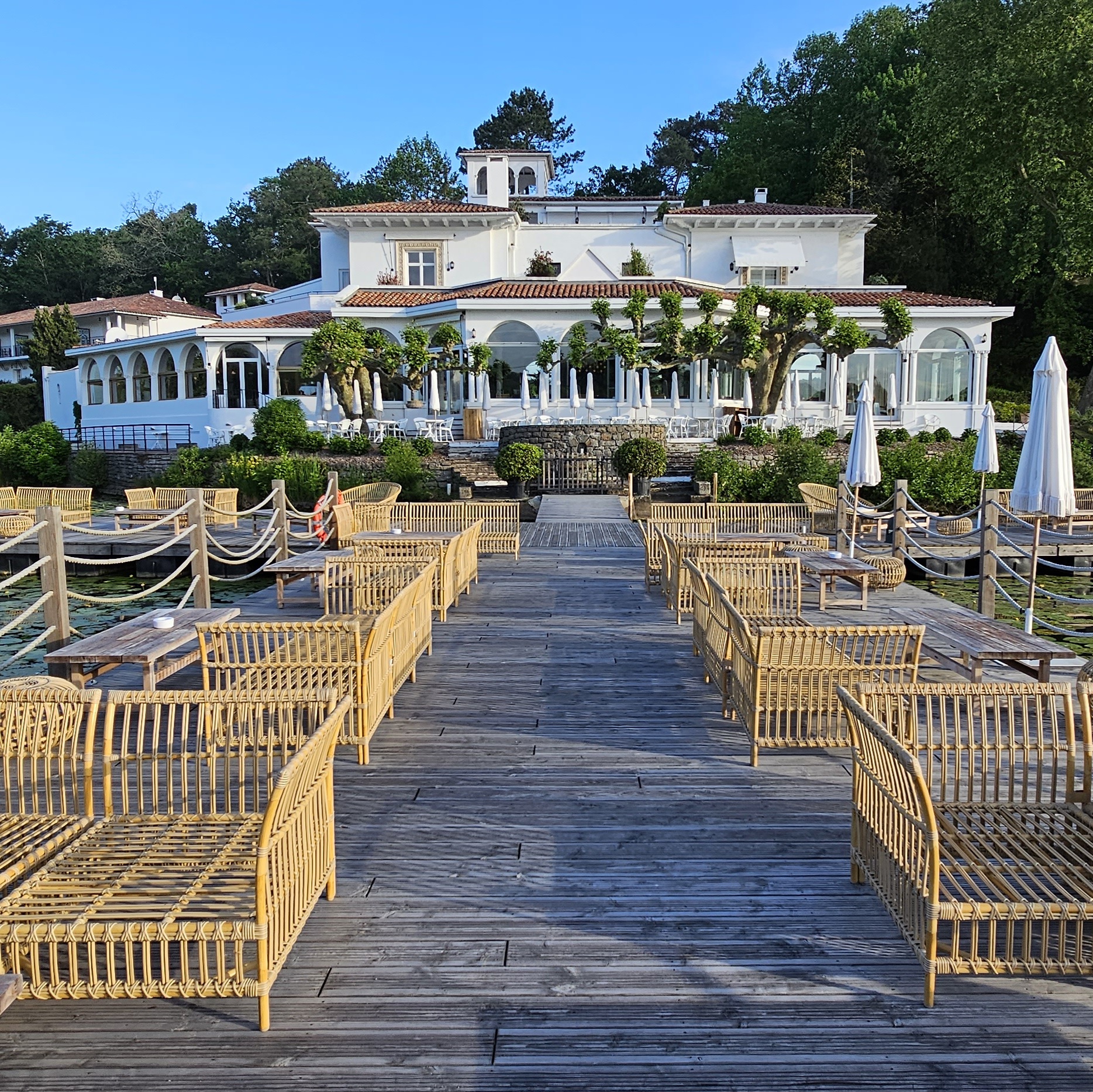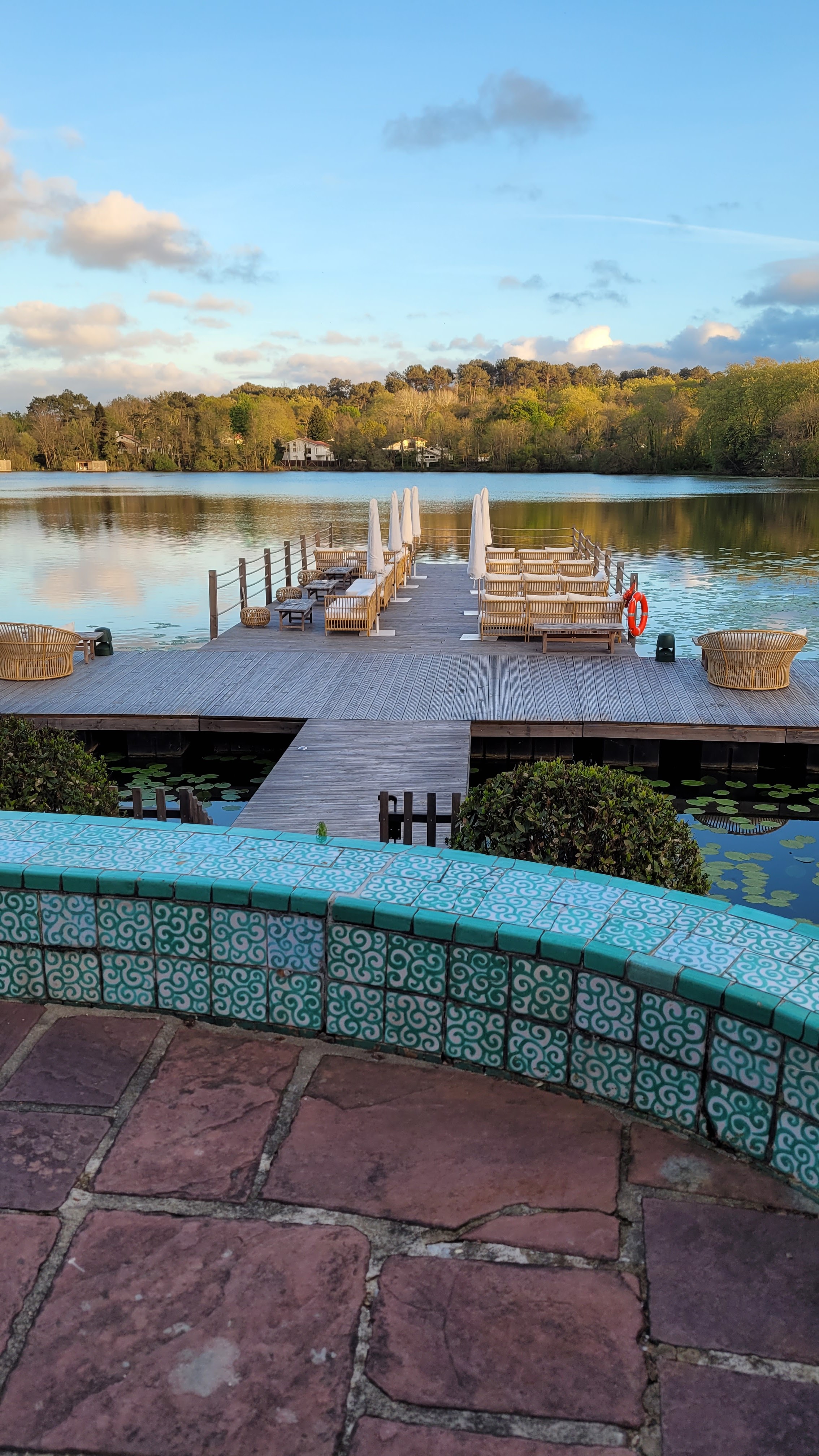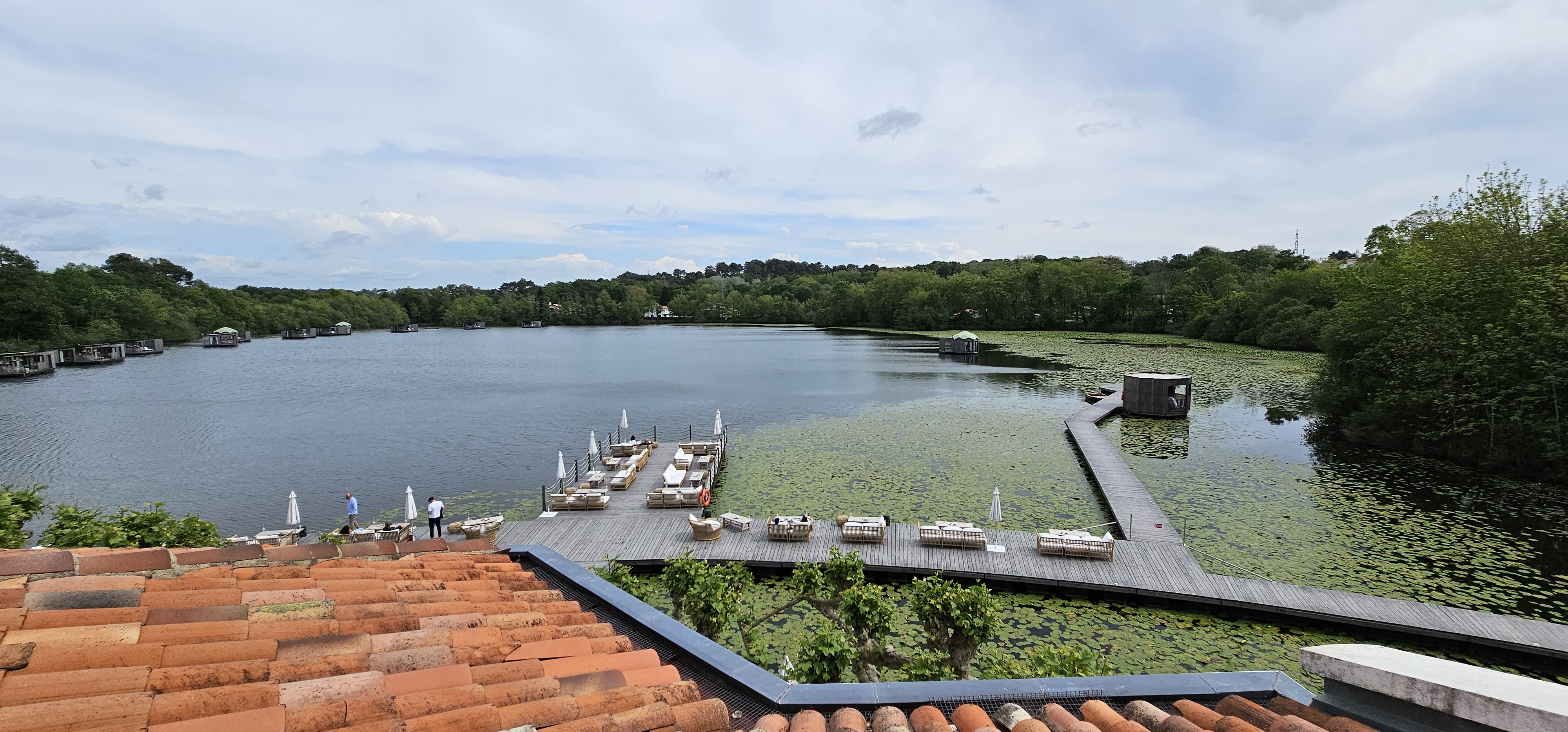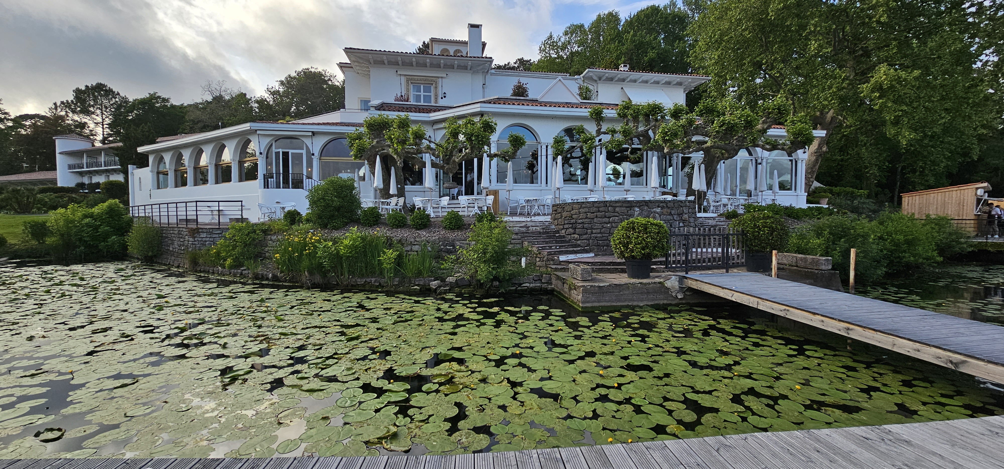 Lorsque l'on consulte une carte, on peut s'inquiéter de la géolocalisation de l'établissement (proximité de l'aéroport, d'une zone commerciale...). Cela participe à la divine surprise de l'arrivée dans ce havre de paix et son joli petit lac agrémenté de quelques lodges flottants. Les aménagements intérieurs (superbes bar et salle de restaurant) et extérieurs (large ponton en avancée sur le lac et multiples terrasses) sont d'excellente facture. Le directeur, que l'on appelle ici le maître de maison, a fait de cet écrin un véritable bijou. Le confort des suites et chambres est irréprochable (qualité de la literie, des oreillers, draps vraiment très doux, équipement complet digne des meilleurs 5*...), et que dire de l'accueil ? Malgré une riche expérience dans les meilleurs hôtels, nous avons rarement rencontré un équilibre aussi parfait que subtil entre chaleur, sourire, bienveillance et professionnalisme : bravo ! Une mention spéciale pour le comportement de TOUT le personnel vis-à-vis des animaux de compagnie (nous avons deux chiens) : là où ils sont le plus souvent tolérés, ils sont ici clairement les bienvenus ! Durant notre séjour, lors de la diffusion au 20h de TF1 d'un reportage sur les perles de la côte Basque, nous avons eu la surprise de voir un beau sujet sur cet établissement, largement mérité, et où nous reviendrons avec grand plaisir !