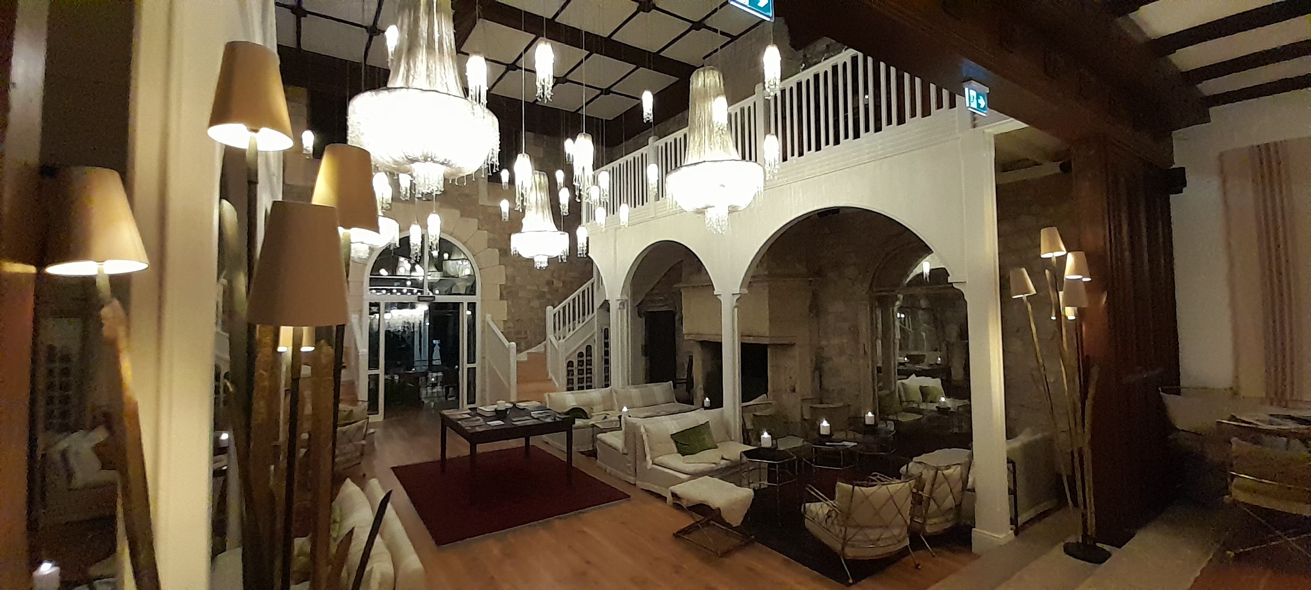 Entièrement rénové dans un style très bling bling avec des luminaires et suspensions kitchs, pampilles en excès. Peinture des façades extérieures trop blanche sans couleur pour relever les détails de cette demeure construite à l'origine dans un style espagnol. Par contre innovation intéressante avec l'utilisation du plan d'eau avec un ponton agréable pour des apéritifs au bord de l'étang et des cabanes chambres pour des séjours au calme .