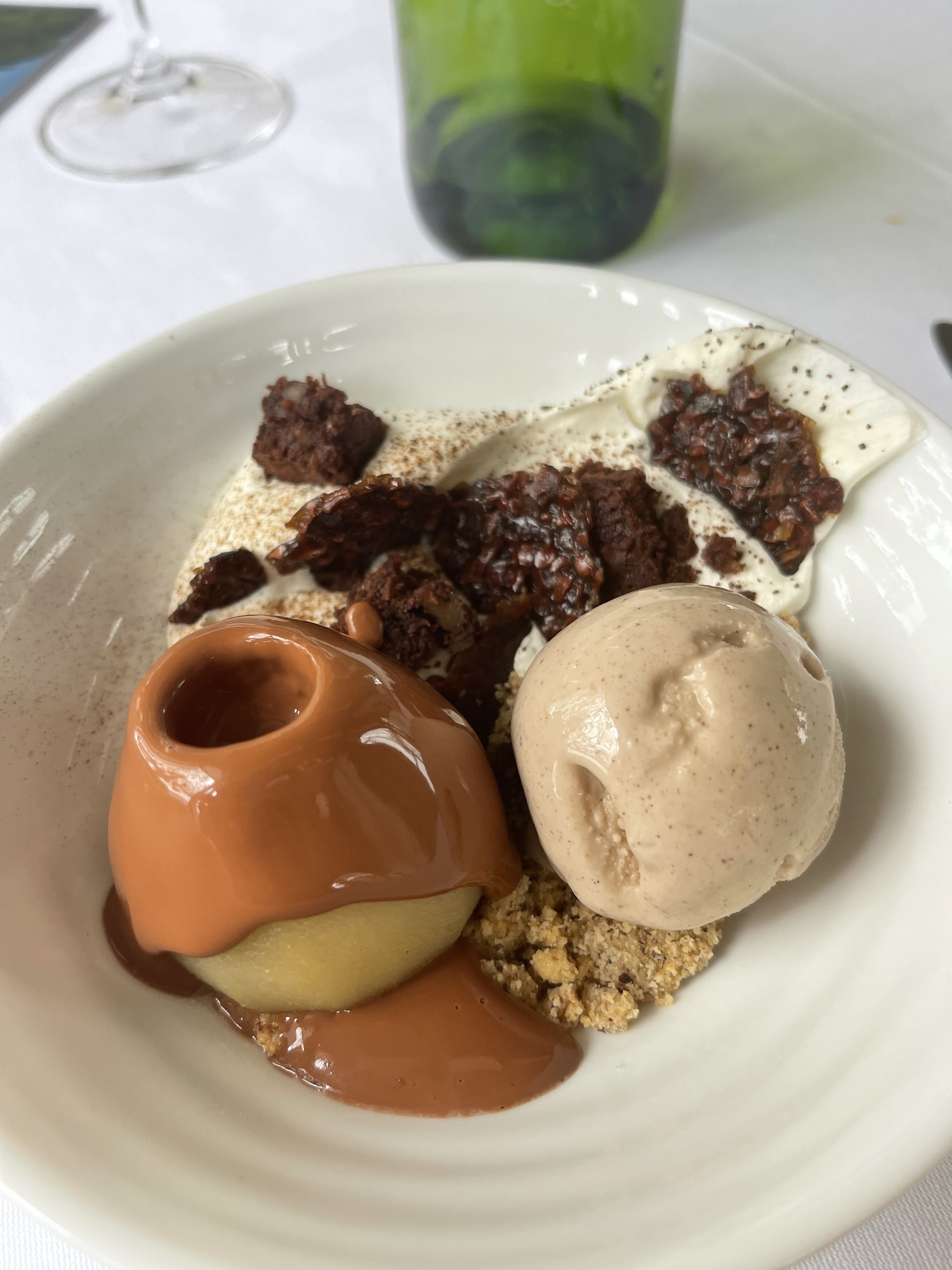 Experience particulièrement appréciée. Sur la terrasse, en pleine nature, avec les oiseaux rejoignant leur lieu de nuit, une soirée au grand calme, avec un service parfait et des assiettes goûteuses. Que demander de plus ?