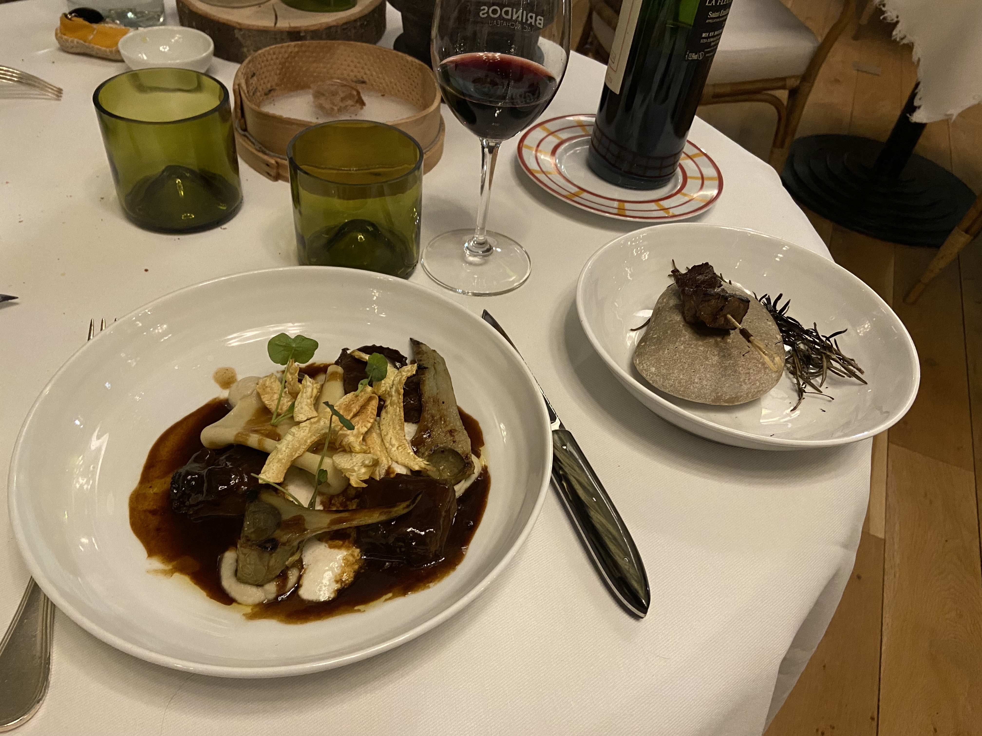 Nous avons seulement été au restaurant. Notre serveur Gaëtan a été particulièrement fin (remarquer que mon anniversaire été de mise pour le souhaiter a été très apprécié). La côte de bœuf n'a pas été délicieuse mais toutes les expressions du chef l'ont été. Le cadre est idyllique. Pour conclure : merveilleuse soirée.