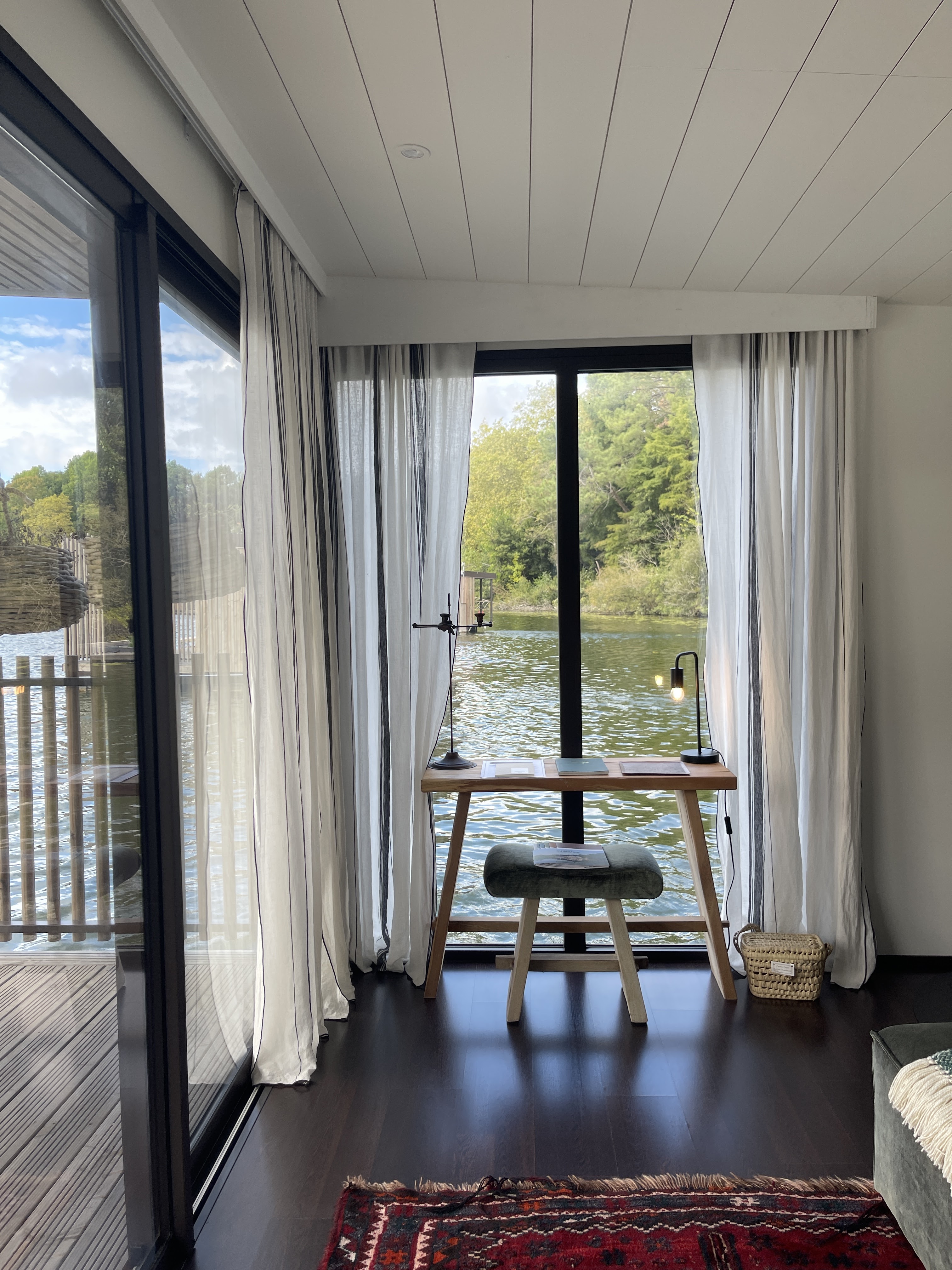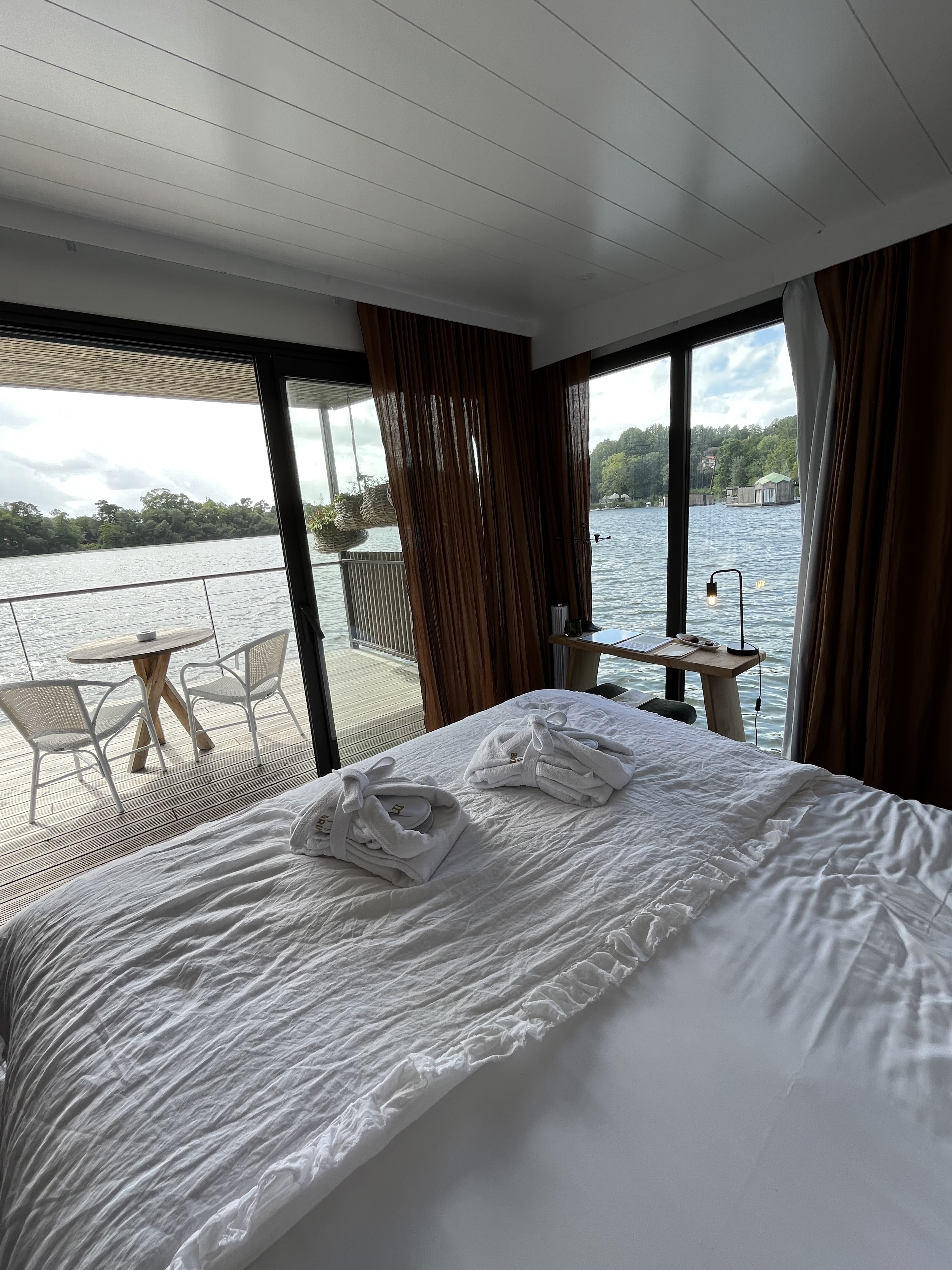 Connaissant le lieu avant la réouverture qui s’est faite récemment, j’avais très peur de voir le résultat notamment avec tout ce qui a été ajouté sur le lac. Rien n’a été dénaturé, ils ont bien préservés les éléments qui donnent du cachet à cet ancien château et redécoré avec goût. Notre chambre flottante était magnifique, il pleuvait lorsqu’on y était mais ça n’a rien enlevé au charme de la vue qu’elle offre. Attention si il y a du vent et que vous avez le mal de mer facilement. Mais c’est globalement très stable, si vous y allez en plein été ce sera sans soucis. Petit déjeuné très bon et servis rapidement dans la chambre sachant qu’ils doivent prendre le bateau pour le livrer. Le spa est pas mal mais il faut encore travailler sur les cabines d’essayages qui ne se ferment pas bien et manquent du côté intimiste qu’on peut trouver dans le reste de l’hôtel et dans le spa lui même. Attention à la chocolaterie a bien demander si lorsqu’on souhaite la chantilly avec le chocolat chaud. Étant donné qu’il est noté avec sur le menu, on s’attends à ce que ce soit automatiquement présent. J’espérais également un chocolat un peu plus épais pour cette gamme de prix mais le goût reste bon. Enfin, l’ensemble du personnel était très gentil et à l’écoute. Nous avons apprécié notre court séjour!