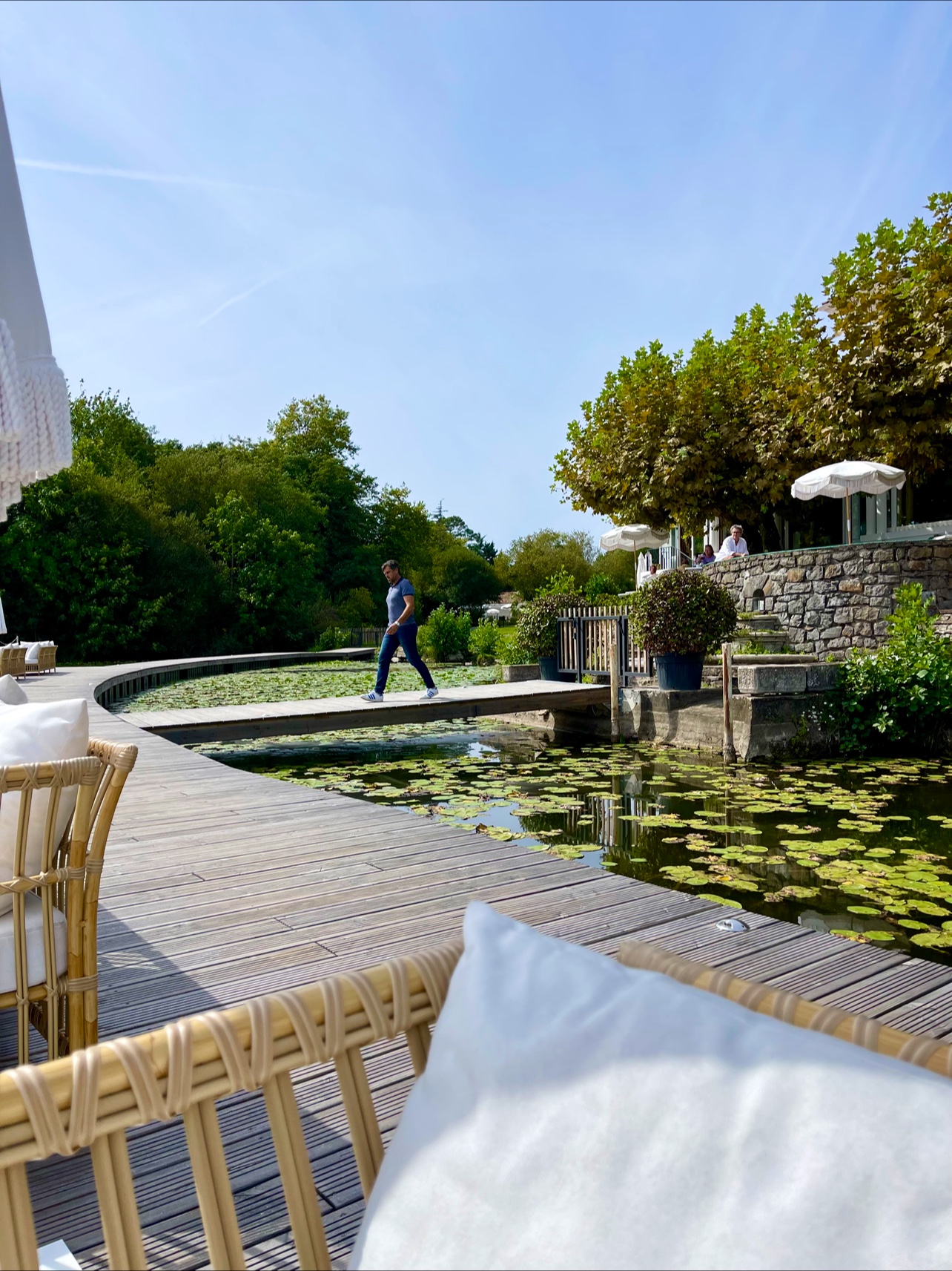 Lieu splendide, personnel compétent et très agréable. Service impeccable. Deux terrasses côté étang vraiment très belles et apaisantes. Des salons cosis et décorés avec beaucoup de goût. Lieu superbe à deux minutes de l'agglomération. Chambres magnifiques et toutes équipées.