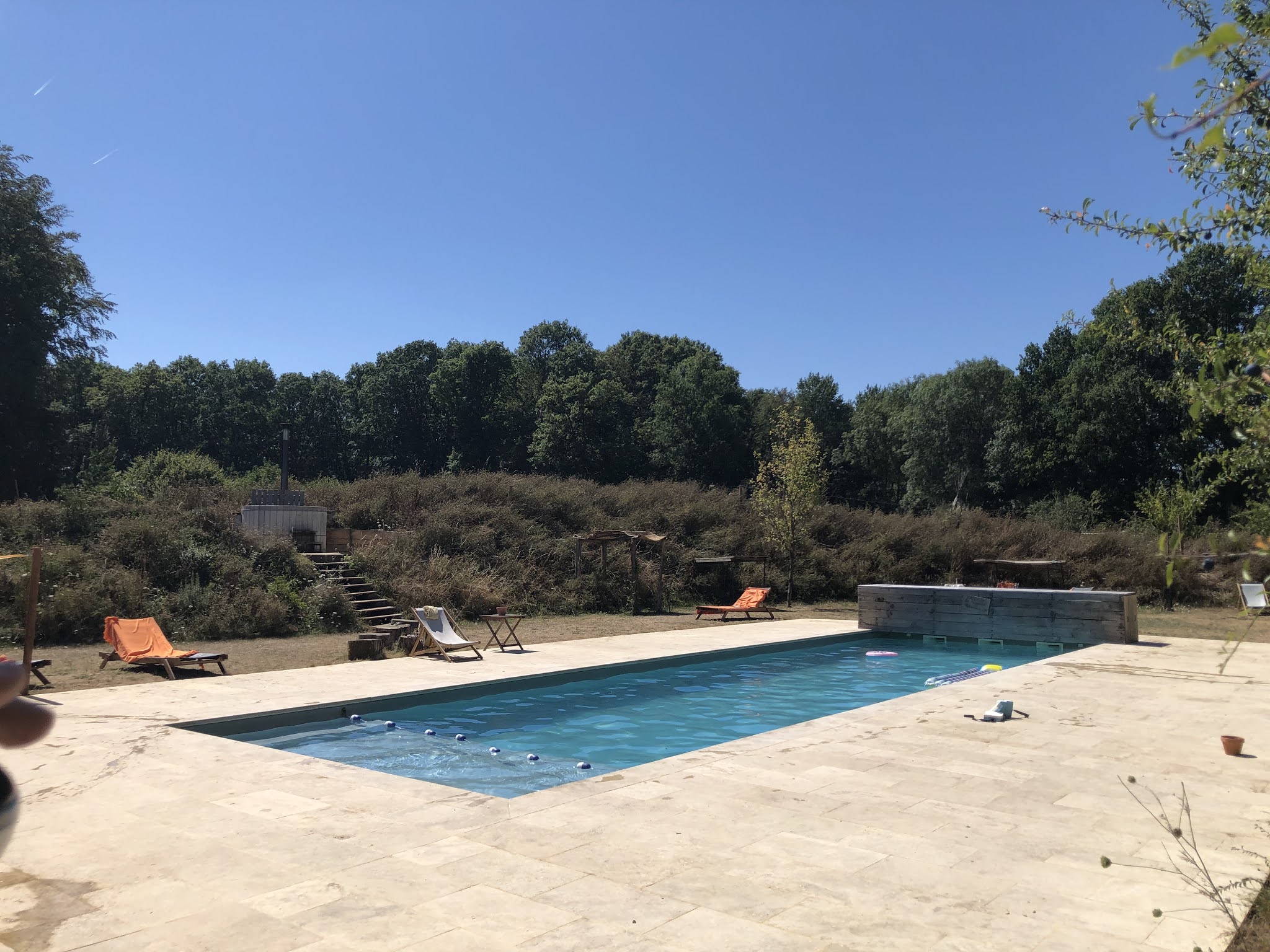 Posté le 19/08/2021 à 06:18"C'est bien simple ces 3 jours ont été nos seules vacances en famille de l'été et cette parenthèse était vraiment géniale. Le lodge était petit mais parfait pour nous 4, bien équipé, propre avec un environnement super. Réveil au chant du coq, moutons qui se promènent au pied de la terrasse. A notre arrivée on a pu profiter de la piscine et du bain suédois et avoir l'agréable surprise de trouver une profusion de brassards et bouées. Et tout est comme ça sur le site: des bacs à sable avec plein de moules, de pelles, des jeux en bois, un baby foot, du ping pong du tennis, des livres, des jeux à partager... Un vrai paradis pour nos filles et pour nous par ricochet. Leurs yeux étaient émerveillés devant les animaux, les caresses ont fusé, comme leurs sourires. On a pu aussi emprunter le super vélo cargo pour une petite virée en famille. Le personnel était adorable, à l'écoute. On serait bien resté plus et on a bien envie de tester une cabane pour une autre fois! Les recommandations du livret d'accueil sont aussi parfaites (site de la brasserie vraiment agréable par exemple) et il est plaisant de découvrir un endroit où la confiance est de mise (système du cellier). Bref un sans faute. Petit bonus, étant installés dans le verger on était vraiment au calme, comme chez nous au point qu'on s'est pris au jeu de rentrer les canards le soir et de leur rendre leur liberté au petit matin."