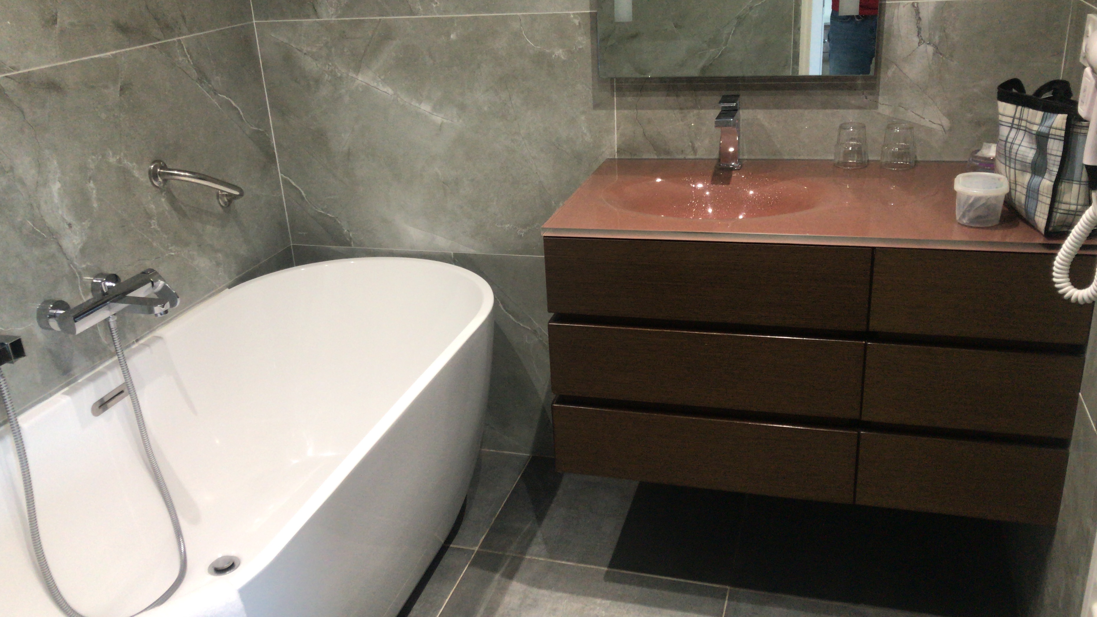 Un séjour merveilleux ! Nous n'y sommes restés qu'une nuit (arrivés à 20h et partis à 6h du matin) mais tout était parfait ! La chambre était propre et spacieuse, la salle de bain était magnifique et surtout équipée d'une baignoire, chose assez rare pour un hôtel aussi abordable ! Mention spéciale pour la réceptionniste ADORABLE, qui nous a accueilli avec le sourire et a su répondre à toutes nos demandes avec rapidité et bonne humeur !