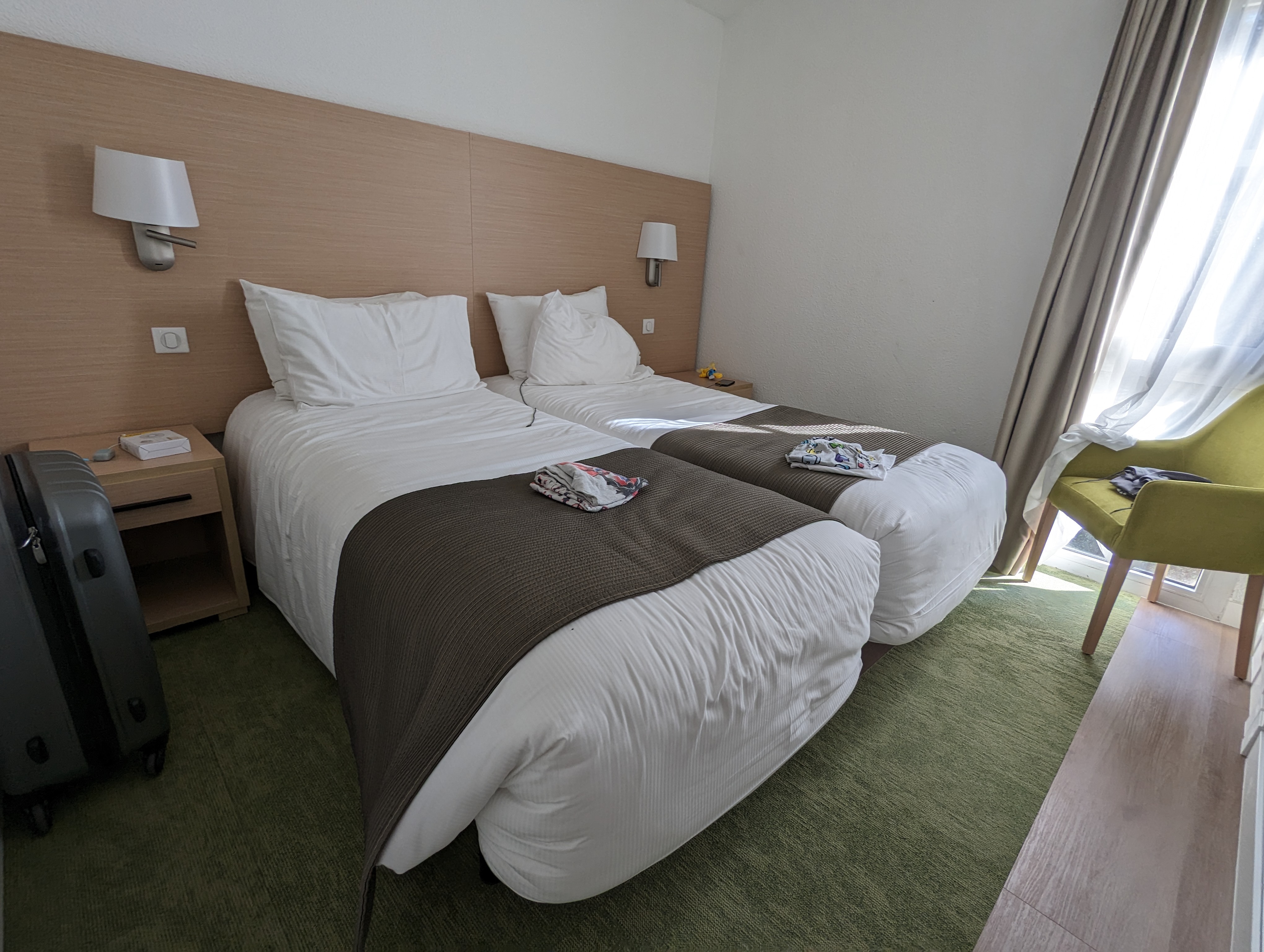 J’y es séjourné en chambre de deux. Chambre 512 Vraiment très agréable Que ce soit l’espace ou la qualité des matelas J’y reviendrai pour mes futures voyages d affaire .
