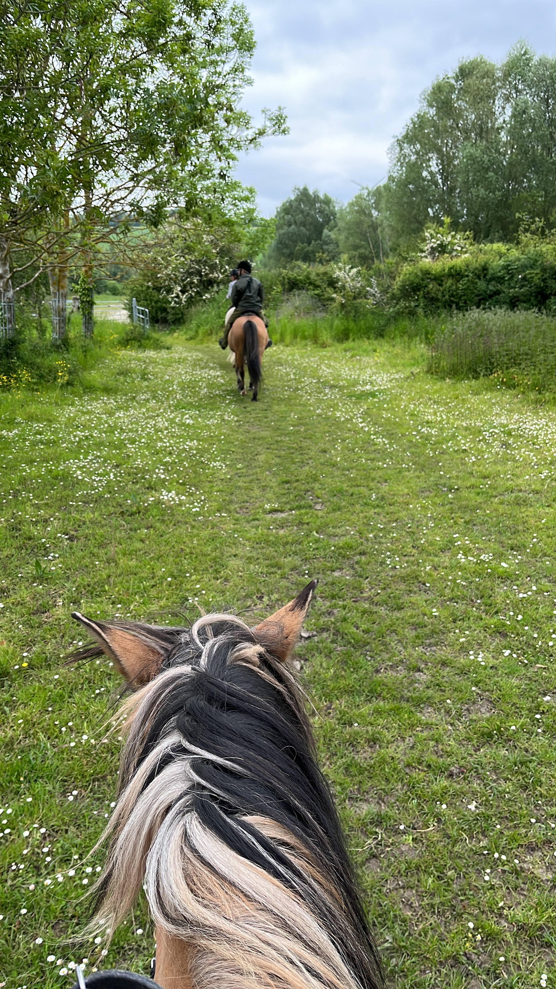 Une expérience vraiment sympathique aujourd'hui. Nous y sommes allé pour une balade équestre, notre monitrice, Camille, était très sympa et nous a guidé avec beaucoup de pédagogie et de bonne humeur pour préparer les chevaux, faire quelques tours de manège avant de partir en balade. Petits échanges agréable pendant le déséquipement des animaux et le rangement du matériel. Deux heures bien agréables, n'hésitez pas à réserver. 1 an après, la nouvelle expérience est tout aussi agréable même si une petite chutte surprenante sur le coup est déjà devenue une anecdote le soir même. Merci encore Camille pour cette belle matinée.