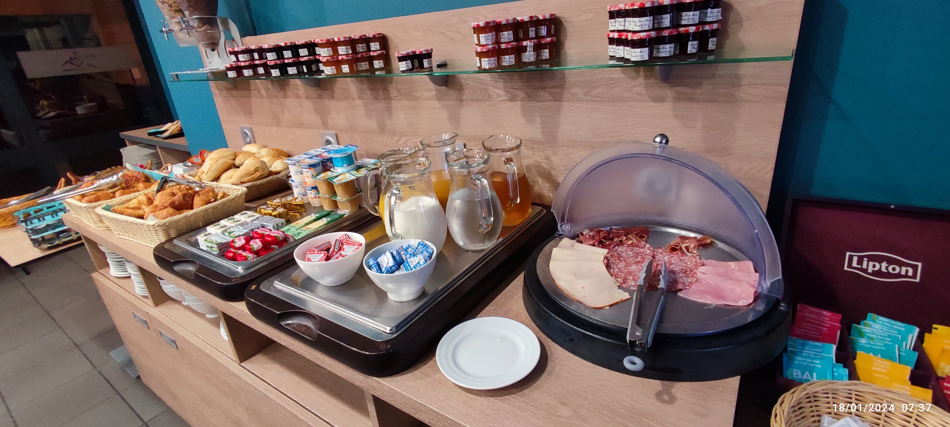 Mauvaise gestion des petits déjeuners ( rapport inscrits / commandes des denrées visiblement non fait !) 3/4 d'h avant la fin il n'y a plus que du cafe et du saucisson ! PLUS de pain beurre croissants jus d'orange toasts serviettes céréales etc. Ce n'est pas accidentel mais regulier... Sinon chambre correcte mais peu entretenue. Moquette malodorante qui gagnerait a etre shampouinee a fond, idem pour sol plastique Sdb tres encrassé ... Ampoules claquees non changées. A signaler, etablissement un peu excentré et parking hotel souvent complet, gratuit sur 1 seule des rues voisines...