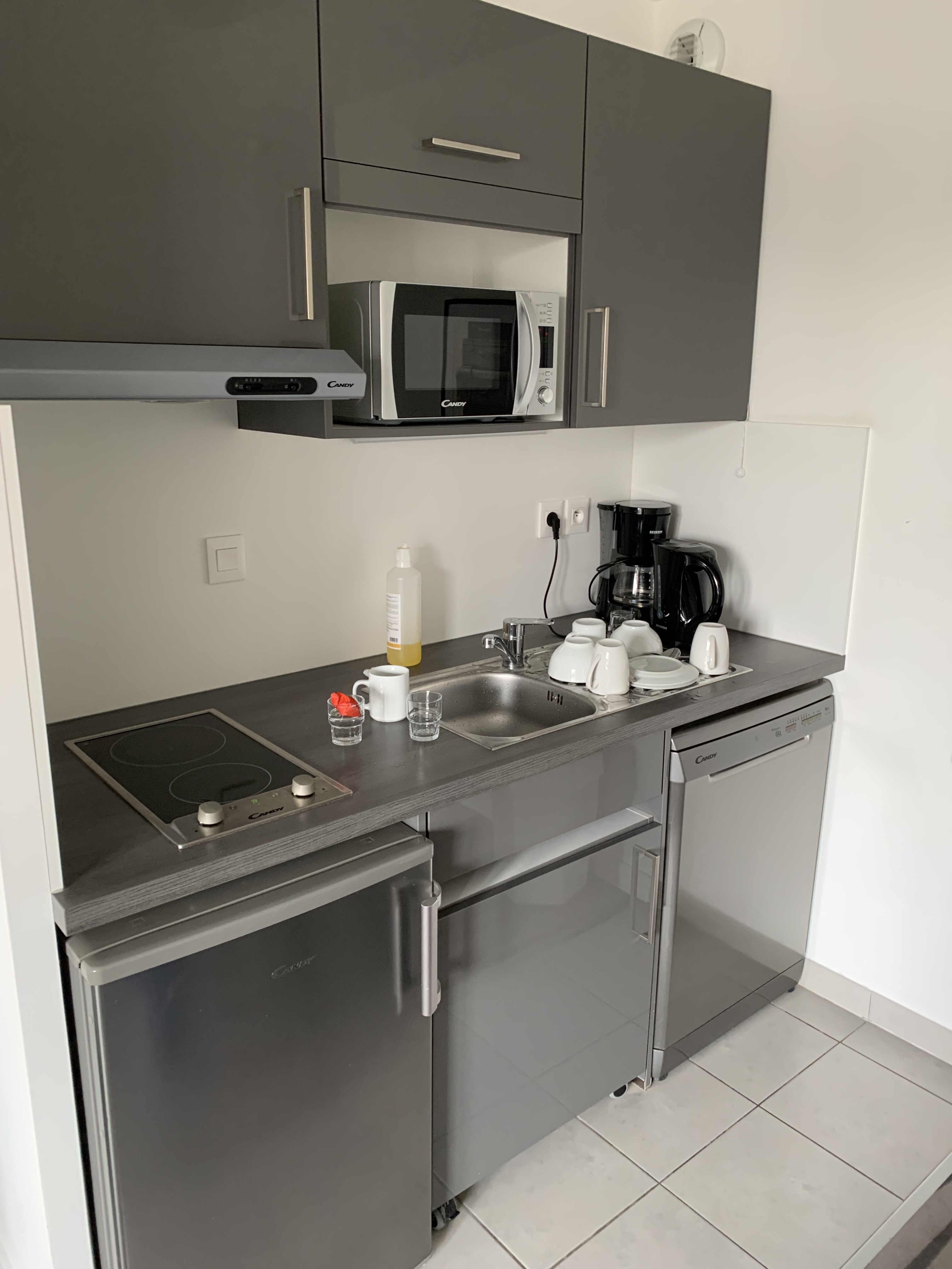 Séjour catastrophique, Nous avons eu la joie d'avoir un appartement avec sanitaire et douche pour handicapés; sans rideaux de douche ni porte ni endroit ou poser la serviette et les vêtements hormis sur les wc génial dirons nous, parlons un peu de l'hygiène complet de l'appartement,moisissure, vmc noir, canapé avec des miettes et des trous de cigarettes, quand à la moquette un vrai ni à poussière. La chambre n'a pas de tv!!!!!!!!!! Une honte. Un lit hyper bas et une literie tellement dur. Nous avons également eu la chance d'avoir des voisins du dessus avec des enfants à courir et sauter ça en est devenu problématique. Bref un appart hotel aussi cher et aussi dégueulasse et bien il est clair que nous ne reviendrons pas. Le seul bon point il est a 2 min top chrono de la gare de Tours. A Fuiiiiiîiiiiiir