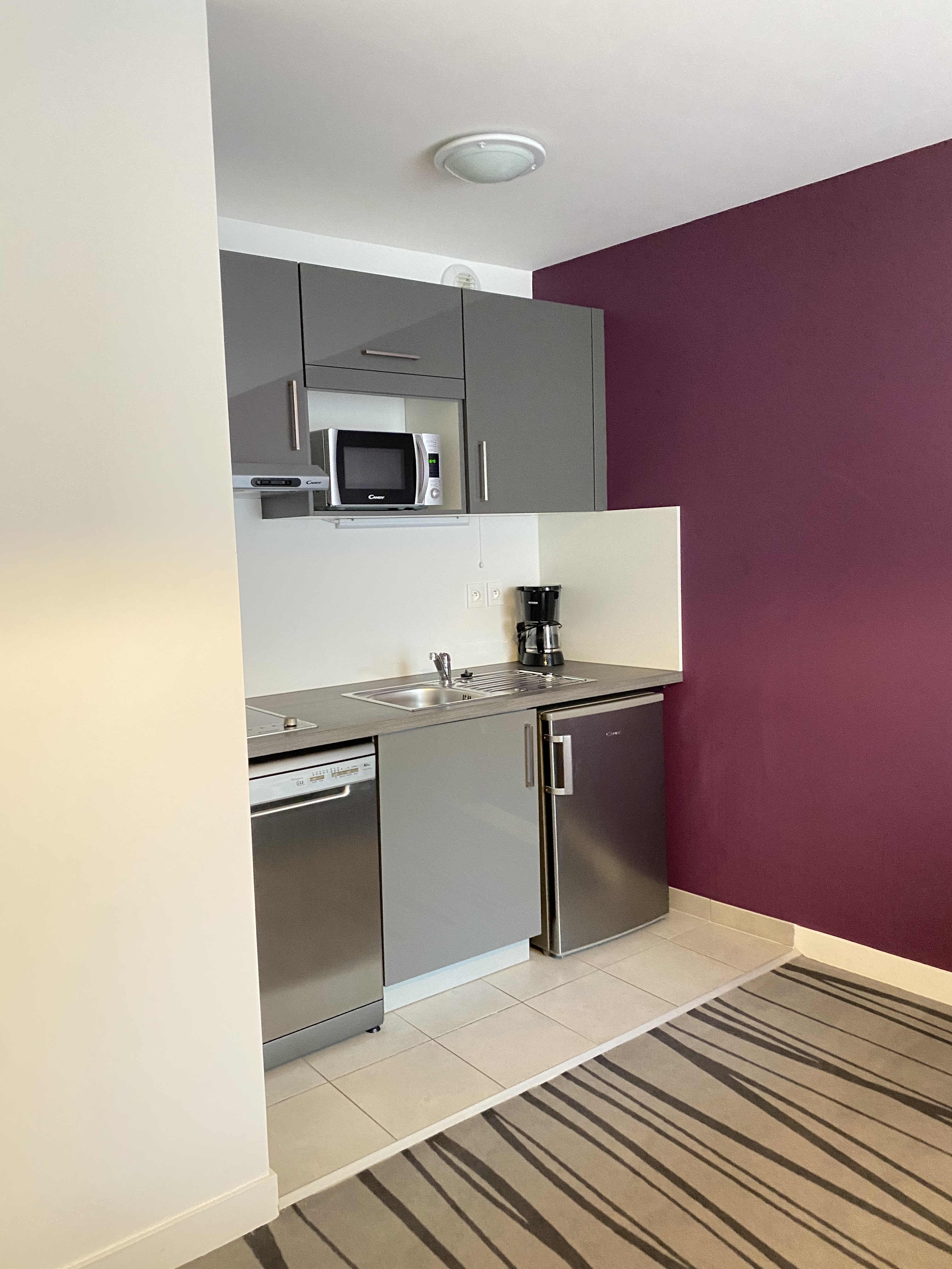 Séjour pour 2 personnes: La chambre était spacieuse, propre et cuisine fonctionnelle. Le séjour était agréable. Dans notre chambre il manquait un jeu de serviettes de bain et pour nos amis il manquait des draps. Le personnel était très gentil sauf les femmes à l’accueil qui n’étaient pas très conviviales.. La piscine et la salle de sport bien. Petit déjeuner 10€/jour/personne simple et correct: mini viennoiserie, gâteaux emballés, pain et confiture, fruits, jus d’orange, machine à café, jambon, tomate, fromage, céréales et lait. Attention: prévoir budget parking, les stationnements dans l’hôtel sont complets. Prévoir 8 à 12€ la journée pour les parkings au alentours ou bien se garer plus loin pour parking gratuit.