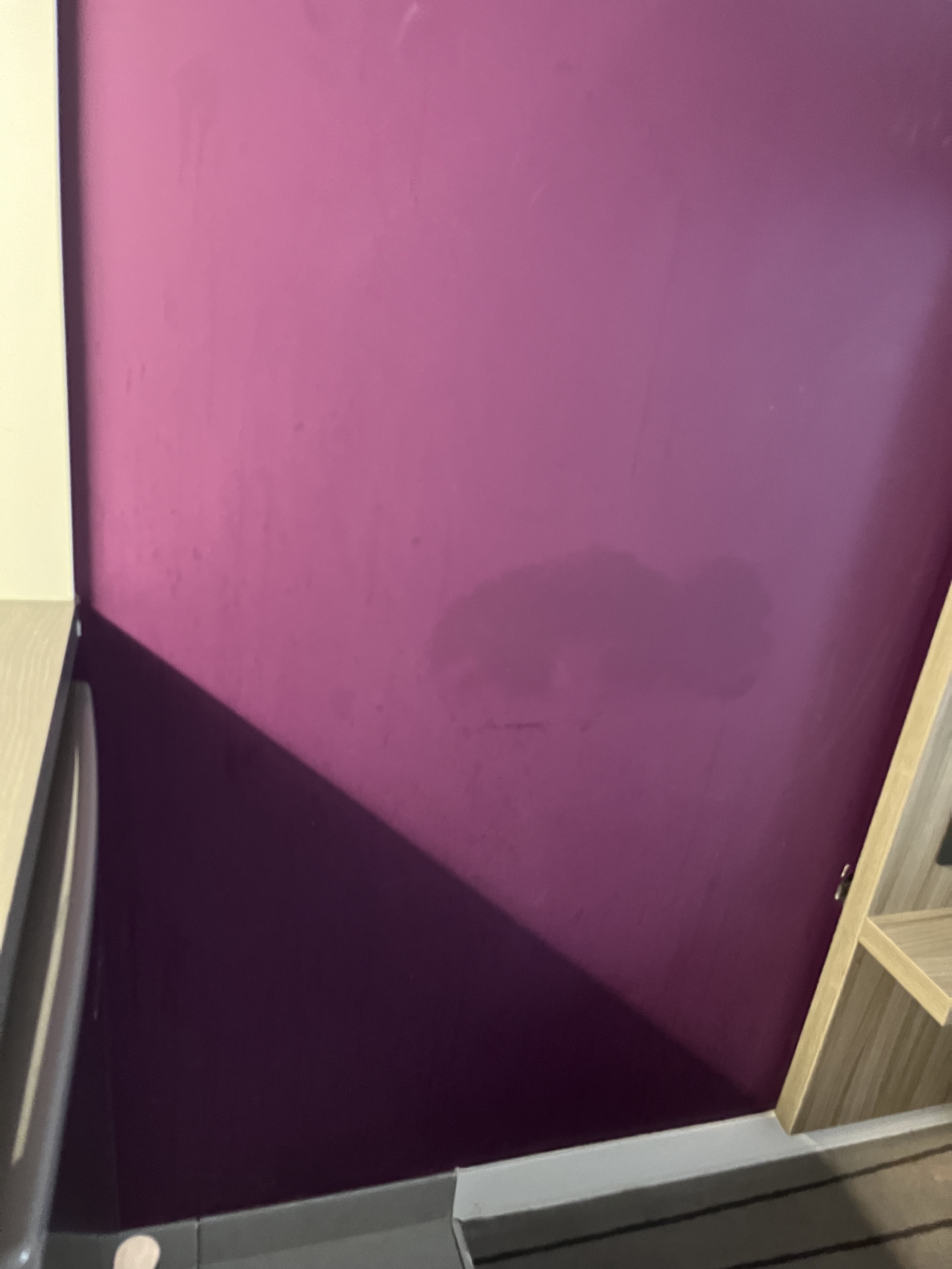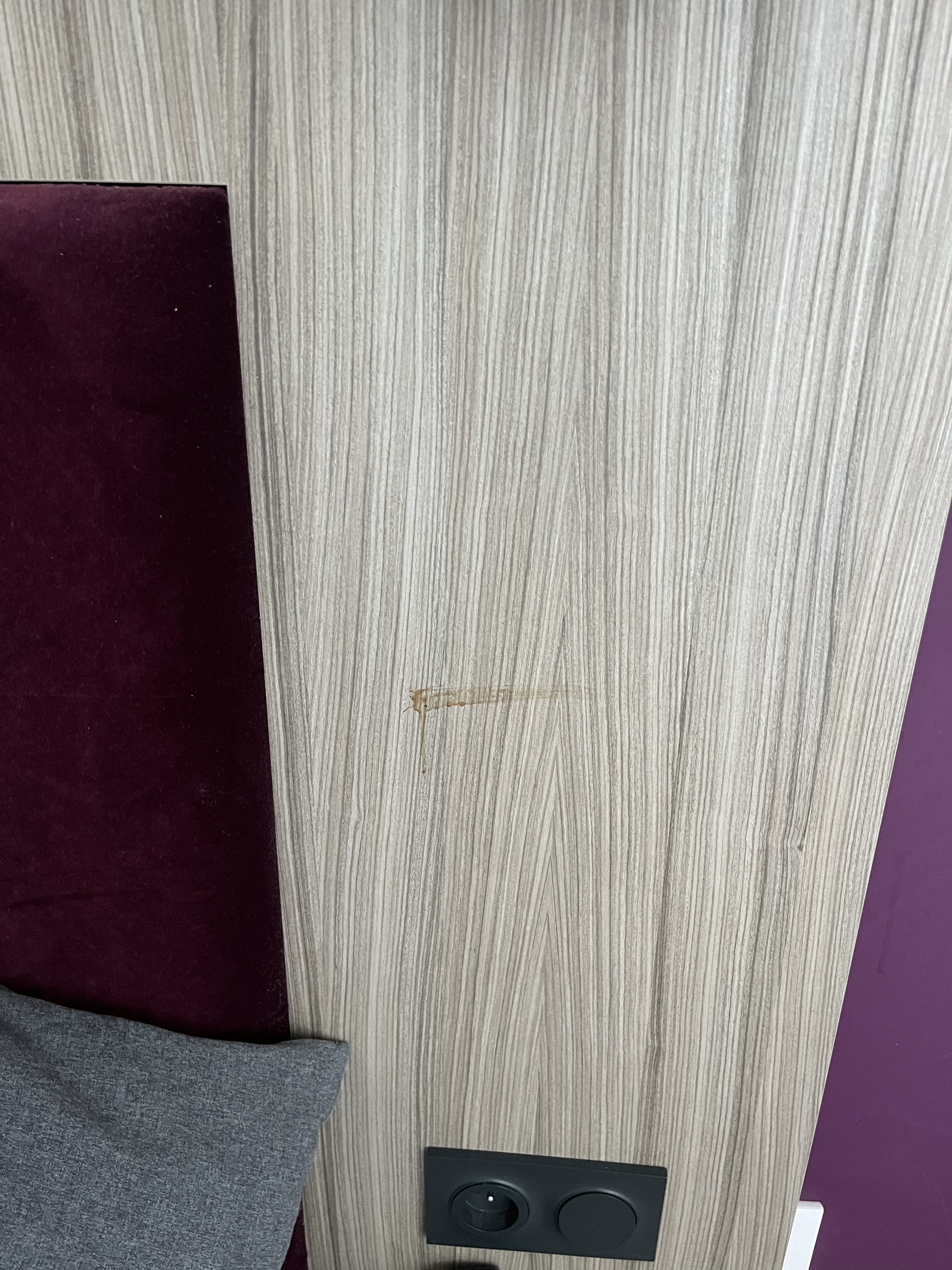 Dommage d'avoir moquette au sol, pleine de tâches, et une tête de lit en tissu, pas hygiénique tout cela!! et pas lavables entre 2 clients! Les joints de la douche sont roses, donc plein de champignons, et des tâches de liquide sur le bureau qui me font douter d'un nettoyage efficace! Sinon, studio spacieux et agréable.