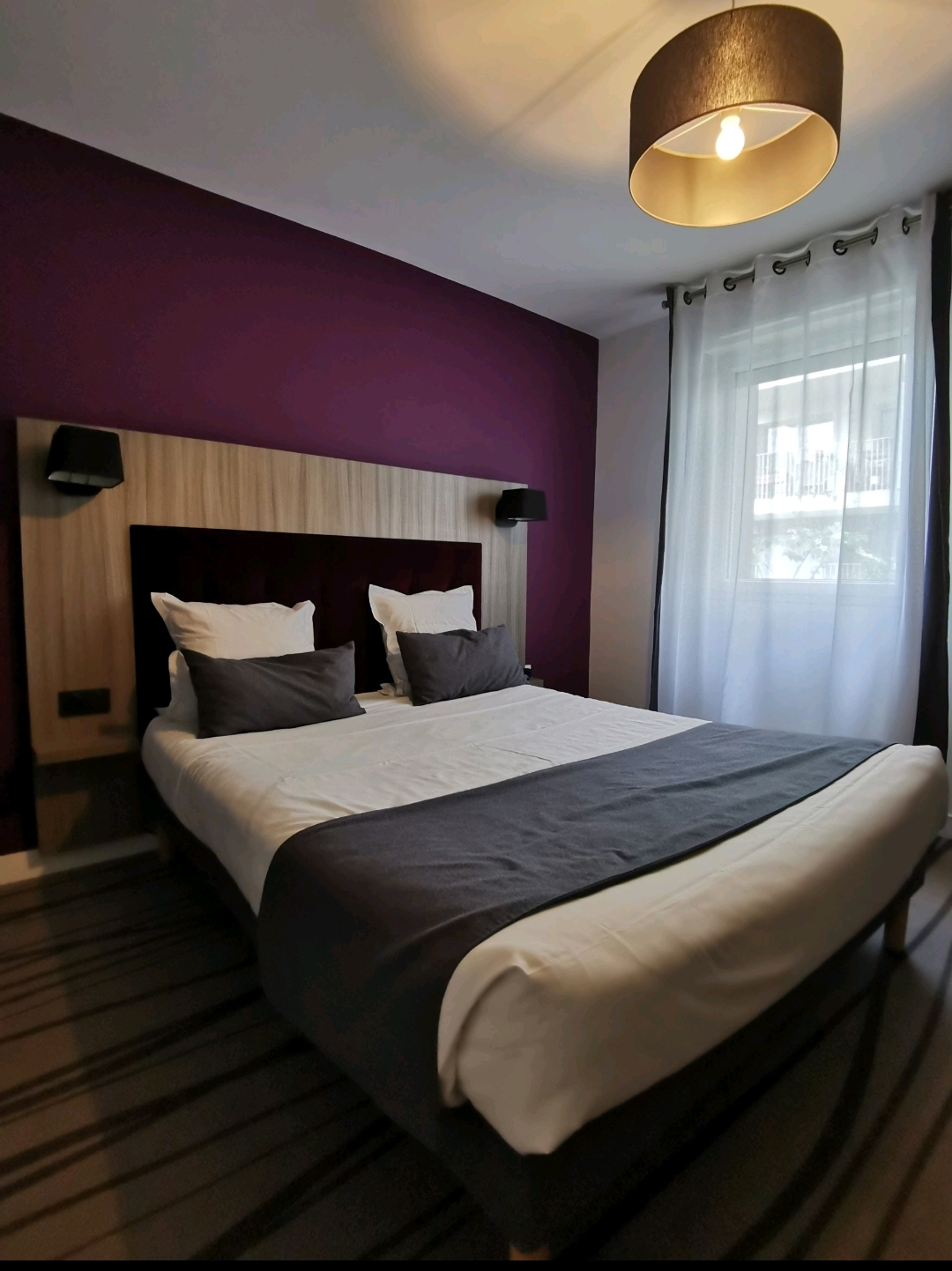 🔻Hôtel bien situé, pas loin des commerces, gare, cinéma... 🔻 Nous avons eu la chance de trouver une place pour se garer sur un parking gratuit le dimanche jusqu'à 9h le lendemain. 🔻La réception ouvre à 16h le dimanche pour récupérer la chambre. Personne à l'accueil sympathique. Avant de partir, ne pas oublier de prendre sa poubelle et la jeter au RV au fond du couloir 😉🚮 Chambre confortable et calme où nous avons passé une bonne nuit 😴 Parfait pour se reposer une nuit avant de reprendre la route 🤟😁