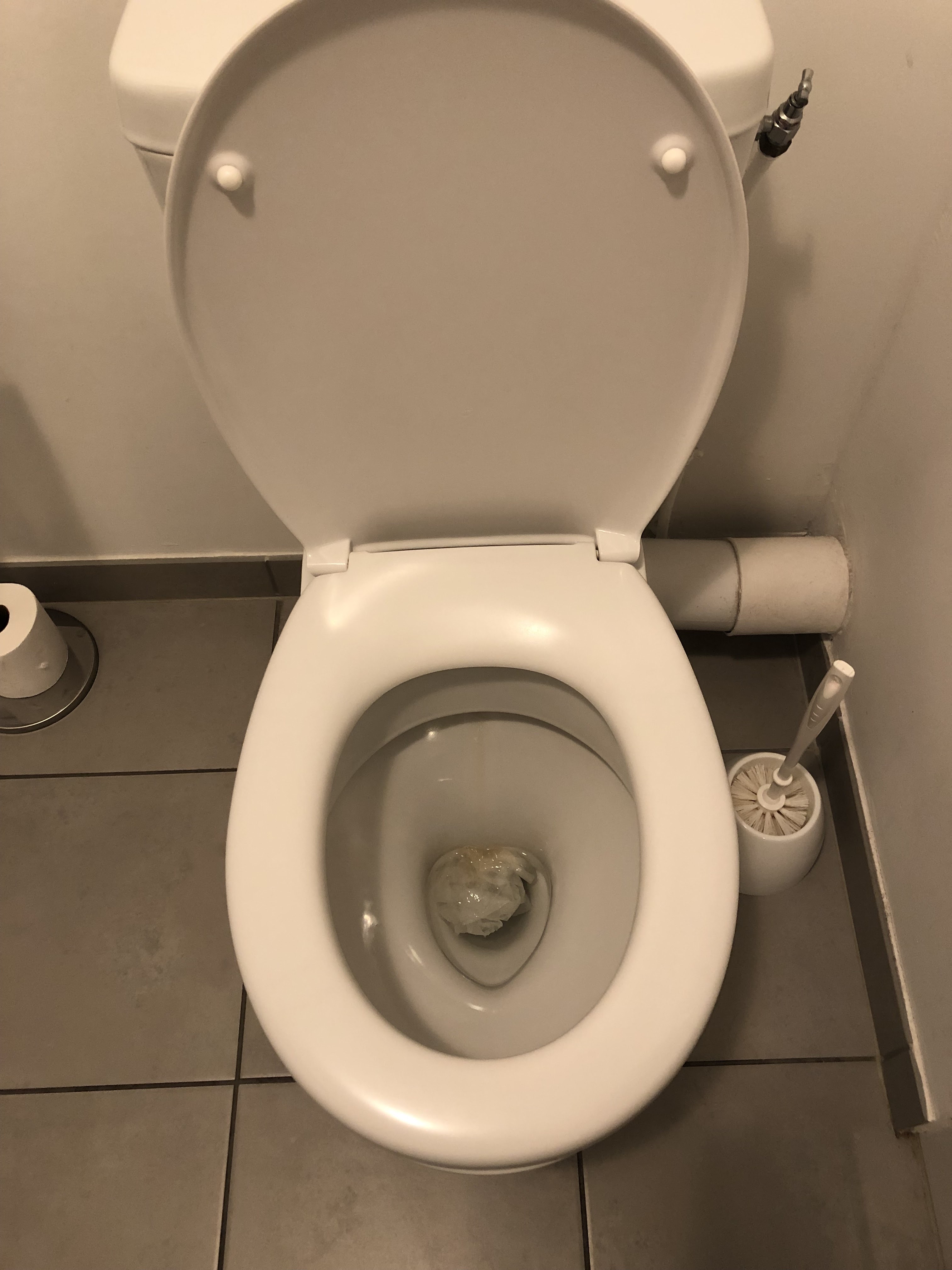 Traces marron au-dessus des toilettes + traces mur salle de bain + bruit à plus de 23h30 (musique, cris)