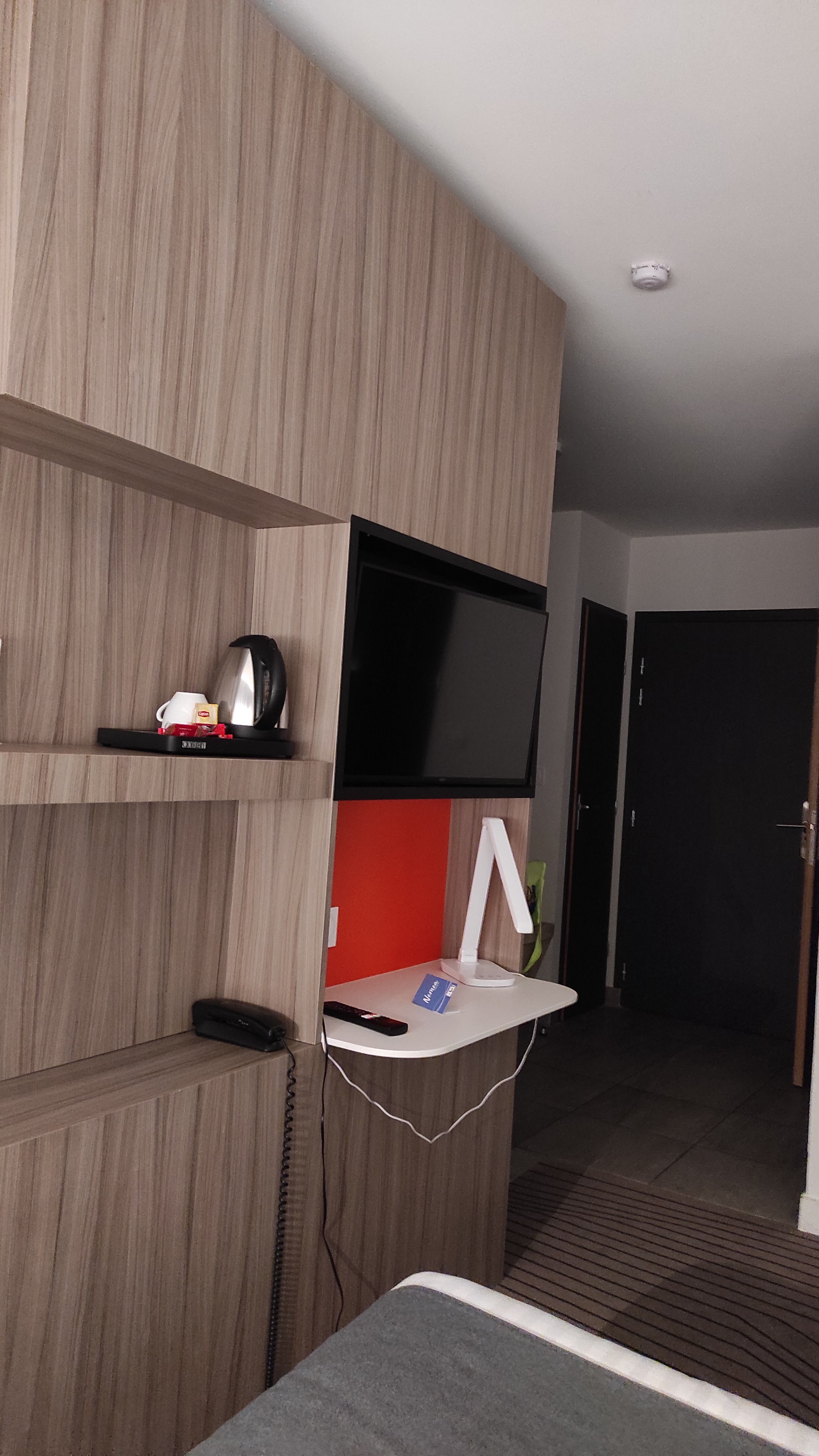 Posté le 26/08/2022 à 17:35"Points positifs : chambre propre, chromecast, lit confortable, piscine propre et chauffée. Points négatifs : personnel du petit déjeuner désagréable dès la matin, chambre payée à mon arrivée mais impossible d'avoir une facture il fallait revenir le jour du départ (perte de temps), peu d'intimité lorsque les stores sont ouverts = vis à vis direct avec immeuble d'en face, pas de serviette fournie pour la piscine, pas de distributeur de boissons dans le hall ou bouteille d'eau dans la chambre"