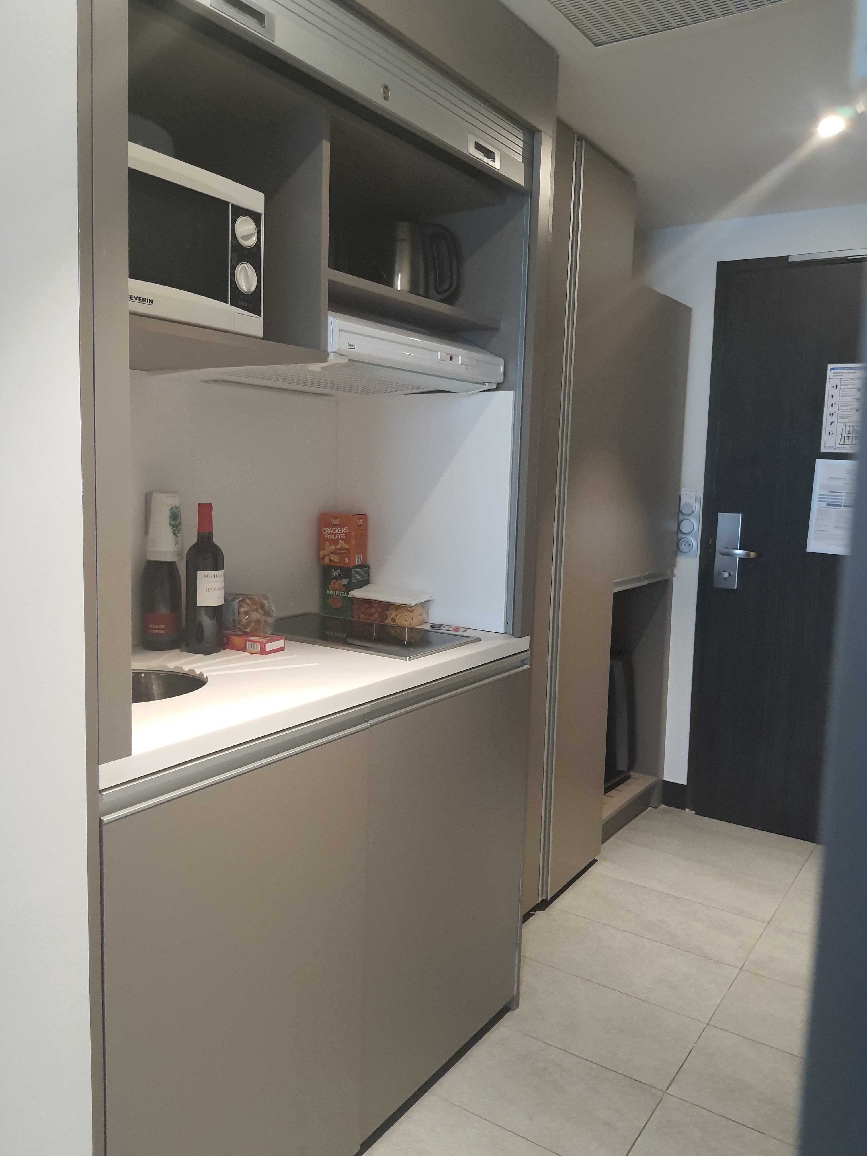 Posté le 06/03/2022 à 13:05"Hôtel très bien Sauf chambre avec une kitchenette qui est fermé ??? On te dis ah ben non c est plus cher . Si je loue un APPART HOTEL . C est pour les commodités d un appartement non ! On te prend une caution qui peux varier entre 150 et 300€ mais sur quoi vous basez vous pour nous rendre cette caution ou non . Il n y a aucun état des lieux réalisé en ma présence donc c est vous qui décidez sans nous . Légal j en doute . Bains à remous ferme le soir vendredi samedi . C est peut être écris mais qu avons nous de moins que les clients de la semaine qui eux y ont accès . Niveau propreté pour le standing de l'hôtel peux mieux faire ( photo jointe ) ."